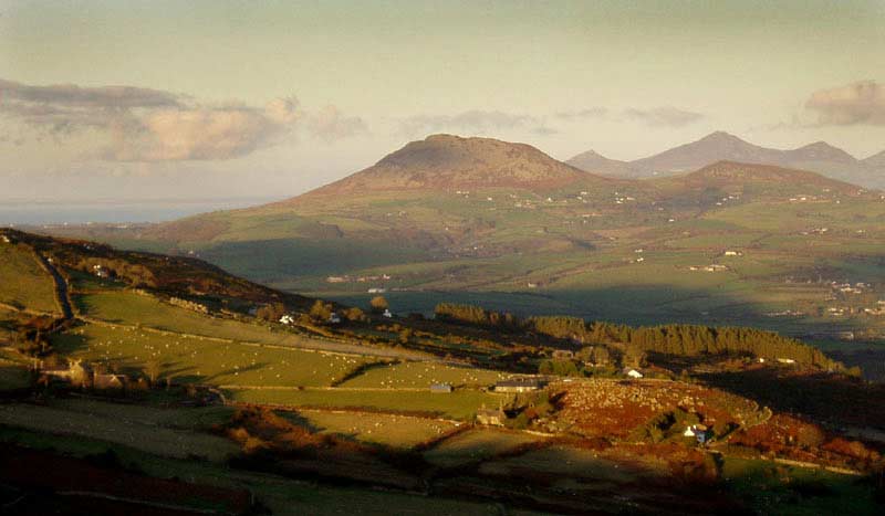 Modrun was the only child of Vortimer on record. He might of course have had more, but no other in metioned in the genealogies. Her name is surprising, as it signifies a pagan background. Yet Vortimer, who was blessed by St Germanus for restoring Christian churches (he is called Gwrthefyr 'Bendigeit'), is hardly associated with paganism. Modrun, on the other hand, was very much a saint. Name The name of Modrun is closely related to that of Matrona, the Roman mother goddess. Other forms of her name are Materiana, Modron, Madrun, Madryn, Fadryn and Fadrun. Saint The Catholic Church reveres (a) Modrun as a saint. St Madrun's day is April 9th, although a second day is October 19th, while Batrum also supplies June 9th. The Church recognises no ties to Vortigern, and identifies St Madrun or St Materiana only with "A Welsh or Cornish widow. No details of her life are extant, but some Welsh churches bear her name." Modrun has lent her name to a score of churches, spread over the West from Gwynedd, through south Wales and even into Cornwall, where the parish church of Tintagel is dedicated to St Materiana. This may point to the existance of several Modruns (more of that below). Gwynedd Modrun is connected to Wales in several ways, mostly though in the area of southern Gwynedd. One of these is Trawsfynydd, where she and her handmaid St. Annun, while on a pilgrimage to Bardsey Island, both had an identical dream. In this dream they were ordered to build a church, to which they complied. This church was later dedicated in their honour. Carn Fadrun during the seasons. Click the images to enlarge. The other connection with Modrun is the southern Lleyn peninsula, where a Madryn Castle, a Carn Fadrun (fort - click here to enlarge the image), a Carnfadryn (village) and a Cefn Madryn are all huddled together. In this area we also find a lot of geographical names connected to her grandfather Vortigern; Nant Gwrtheyrn, Bedd Gwrtheyrn, Castel Gwrtheyrn and the unlocated Cwm Gwrtheyrn. Close to Carn Fadrun was the former township of Madrun, now represented by Plas Madrun. South of Carn Fadrun lies Garnfadryn, to the north lies Madryn castle, where once stood a statue for St Modrun. This bring us of course to the connection we are looking for: Modrun identified as the daughter of Vortimer, and hence the granddaughter of Vortigern. Gwent Modrun is otherwise connected to Gwent. According to the Bonedd y Saint, Modrun (Madrun ferch Gwrthefyr, King of this island) married Honorius, king of Gwent (Ynyr Gwent): Bonedd y Saint, brief 44 & 45: